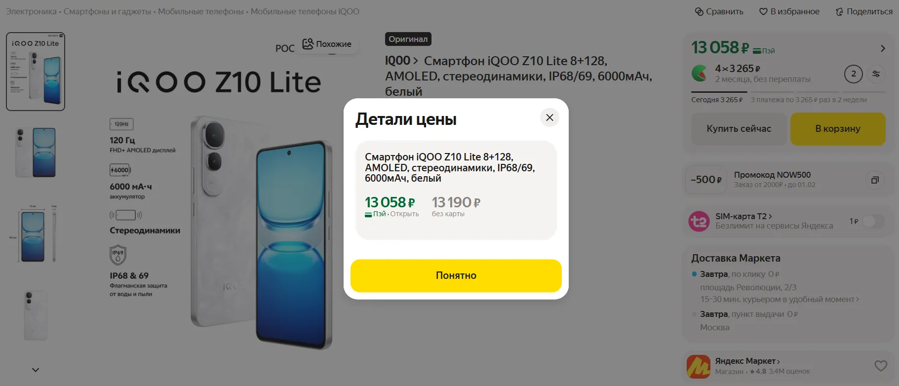 Наш выбор падает на iQOO Z10 Lite, за который просят всего 13 190 рублей на Маркете.