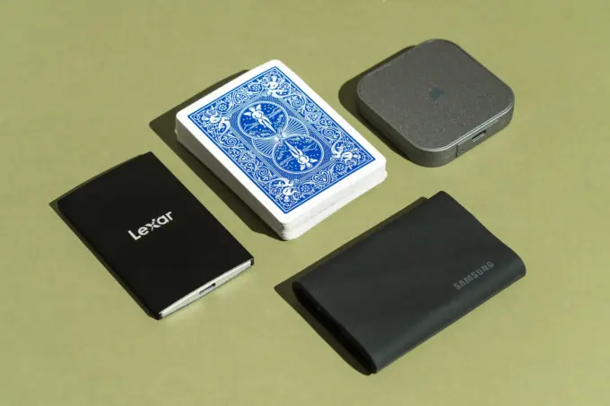 Второй тип самых распространённых накопителей — внешние SSD. Это логичное развитие идеи портативного хранилища. Они дороже HDD, но предлагают совершенно другой уровень удобства и надёжности. Корпуса компактные, лёгкие, не боятся тряски и падений (иногда даже влаги), а скорость копирования кратно выше. Именно поэтому такие накопители всё чаще используют для регулярных бэкапов ноутбуков, рабочих проектов и фотоархивов.