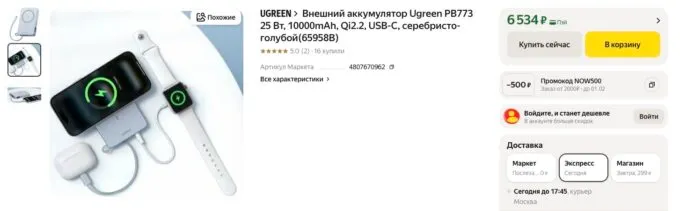 Прямо сейчас на Яндекс Маркете лучший внешний аккумулятор Ugreen MagFlow с зарядкой на 25 Вт можно урвать за 6534 рубля. Также не забывайте, что многие банки готовы отсыпать щедрый кэшбек с покупок на этой платформе.