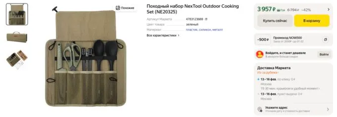 Сейчас отличный походный набор NexTool Cooking Set можно приобрести на Яндекс Маркете всего за 3957 рублей, а с кэшбеком некоторых банков он обойдётся ещё дешевле.