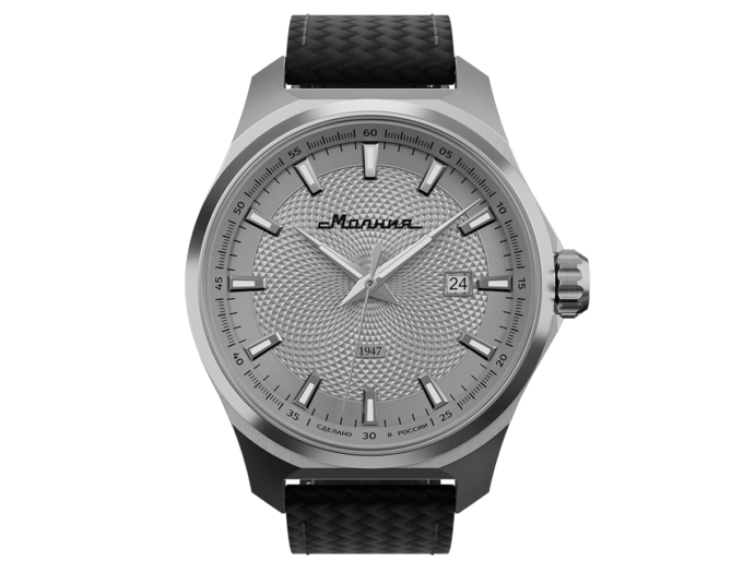 Корпус модели «Гранд» выплавлен из стали 316L с зеркальной полировкой, а внутри установлен автоматический японский калибр Miyota 8215 со стоп-секундой и индикацией даты. К слову, это один из самых надёжных механизмов в своём классе. Ремешок с карбоновой фактурой дополнен внутренней подкладкой из фторкаучука, что повышает комфорт при длительном ношении. Финальный аргумент в пользу выбора этой модели — мощная влагозащита в 100WR, которая позволяет спокойно плавать даже в море, не снимая часы.
