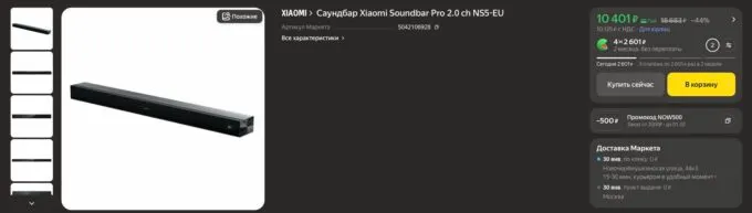Прямо сейчас на Яндекс Маркете отличный саундбар Xiaomi Soundbar Pro 2.0 можно урвать всего за 10 401 рубль. Также не забывайте, что многие банки предлагают кэшбек за покупки на этой платформе.