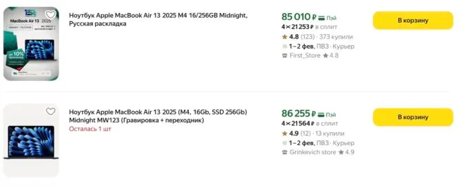 Заметили, что в России здорово подешевели новые MacBook Air. Речь о самых актуальных моделях на процессоре M4, которые продают в версиях 13 и 15 дюймов.