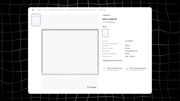 Оказалось, все просто. Пакеты WB бесплатны для клиентов (хотя одно время за них брали деньги). Но их покупают партнеры, открывшие ПВЗ. Пакеты продают тут же на маркетплейсе, причем оптом — по 500 штук за комплект (4к рублей). Самое забавное — на карточке товара нет изображения. А еще пакеты никак не рекламируют — можно, а зачем? Ведь их все равно купят!