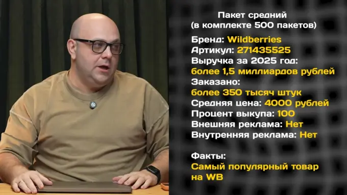 Авторы ютуб-канала Маркет Шоу рассказали о самых популярных товарах с Wildberries за 2025 год. Оказалось, что самый востребованный лот в самом главном маркетплейсе России — обычный пакет.