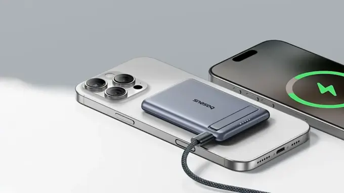 Магниты у Baseus PicoGo AM31 довольно цепкие. С iPhone он держится намертво, как и с Android-смартфонами, но только с качественными чехлами. Беспроводная зарядка выдаёт до 15 Вт по Qi2, а через USB-C можно получить уже 20 Вт. Ещё один важный момент — поддержка одновременной зарядки двух устройств: например, смартфона и наушников. В комплекте идёт плотный плетёный кабель USB-C, который спокойно переживёт активное использование. Отдельный респект за откидную ножку, которая позволяет поставить смартфон вертикально или горизонтально, чтобы смотреть видео во время обеда.