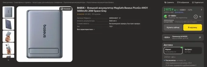 Сейчас на Яндекс Маркете лёгкий и стильный пауэрбанк Baseus PicoGo AM31 можно урвать всего за 2672 рубля. А с кэшбеком некоторых банков вы сэкономите ещё пару сотен рублей.