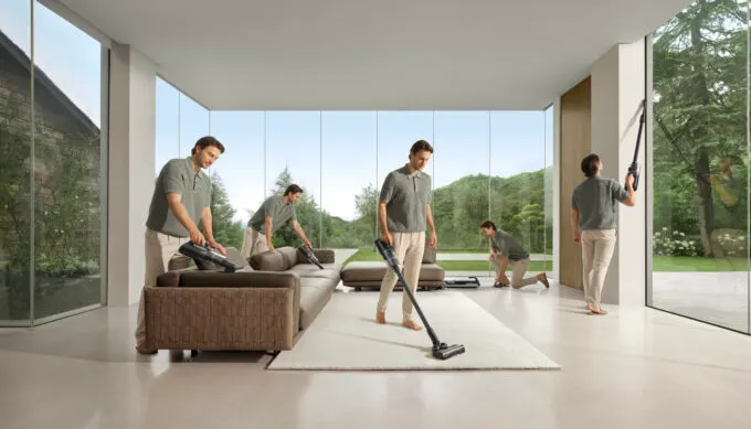 Ещё H14 Dual ценят за универсальность. Этот пылесос отлично справляется с самыми разными типами уборок. Можно провести классическую сухую уборку, а можно вымыть пол или почистить мебель или салон автомобиля. Плюс решает высокая мощность всасывания в 18 кПа и эффективная сборка мусора, в том числе шерсти и волос. Удобно убираться даже в труднодоступных местах высотой от 14 см — это возможно благодаря ручке с наклоном на 180 градусов и системе GlideWheel™, которая облегчает перемещение устройства вперед и назад.