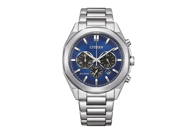 Citizen Eco-Drive CA4590-81L — модель с ярко выраженным премиальным характером. Насыщенный синий циферблат с эффектом Sunray, угловатый корпус из стали 316L и интегрированный браслет создают ощущение дорогого спортивного аксессуара, который уверенно смотрится на любом запястье. Вживую эта модель смотрится нереально круто. Ну, а носить такие часы можно как под костюм, так и с джинсами.