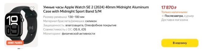 - Apple Watch SE 3 — 24 200 рублей (было 31 000 рублей)
