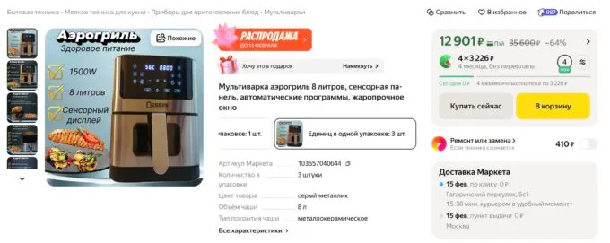 В среднем аэрогрили стоят дороже мультиварок — вероятно, из-за повышенного спроса и резкой популярности. Так, Tuvio TAF01 (бренд Яндекса) обойдется в в 9700 рублей. Но есть и бюджетные модели — например, BRAYER BR2043 за 5,5 тысяч рублей.