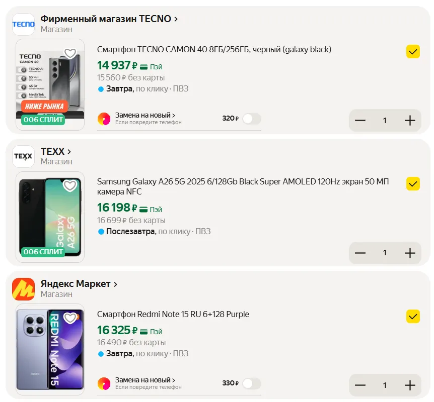 А что по ценам? Даже не смотрим на официальный прайс, сразу ныряем на маркетплейсы и сторонние площадки: на Маркете девайс стоит минимум 16 490 рублей, на price.ru — от 14 790 рублей. Звучит круто, но взглянем на конкурентов: