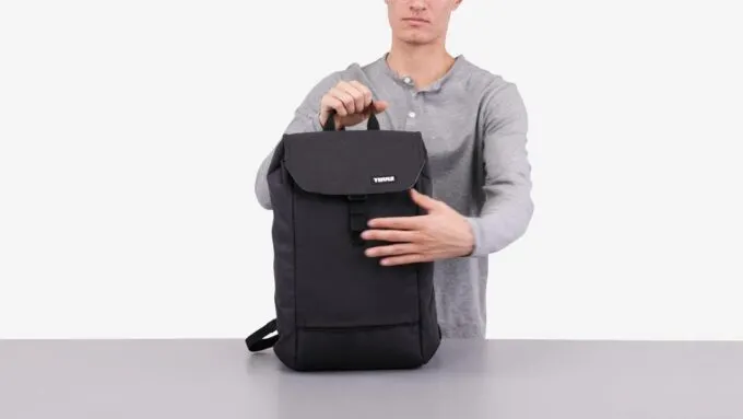 Рюкзак с минималистичным дизайном от известного бренда Thule. Главная фишка — система SafeEdge. Внутри находится отсек под ноутбук, которые защитит устройство, даже если грохнуть рюкзаком об пол. Вещь изготовлена из прочного полиэстера рипстоп, есть много отделений для мелочи и спинка с вентиляцией.