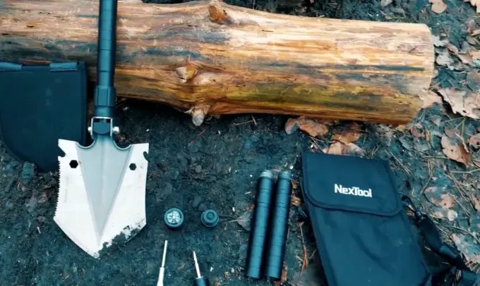 Идём на повышение: NexTool Shovel уже выглядит как серьёзный инструмент для экстремальных условий. Холодный металл, строгий дизайн и ощущение монолитности. А все эти насечки и крючки — далеко не декоративные вещи. В конструкции спрятаны 12 полезных инструментов: компас, стеклобой, огниво, пила, нож для каната, отвёртки и даже свисток. Всё интегрировано аккуратно, без люфтов и каких-либо излишеств. Это универсальный набор для машины, дачи и зимних выездов за город.