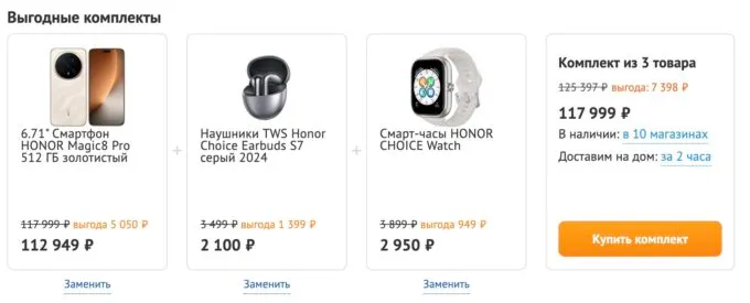 В России Honor Magic 8 Pro оценили в 120 тысяч рублей. Дорого, но при заказе до 9 марта можно собрать выгодный комплект — кроме телефона ритейлеры предложат наушники Choice Earbuds S7 и умные часы Choice Watch. Также покупатели смогут рассчитывать на расширенное гарантийное обслуживание.
