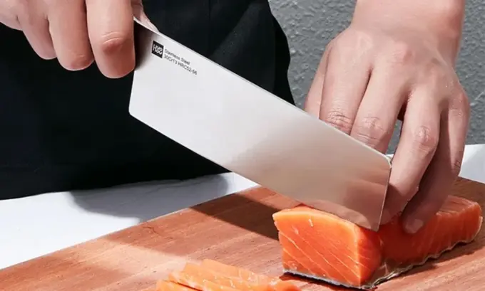 Все клинки в HuoHou Stainless Steel Kitchen Knife Set изготовлены из нержавеющей стали марки 30Cr13. Это практичный и выносливый материал, который не боится влаги и спокойно переносит регулярную мойку даже в кипятке. Самая имбовая фича — полностью бесшовная конструкция. Здесь нет соединений между лезвием и рукояткой, а значит, внутри не будет скапливаться грязь, бактерии и прочая гадость. Рукоятки тут полые, но они грамотно сбалансированы, поэтому нагрузки на кисть практически нет. Ножи не ощущаются тяжёлыми даже при длительной работе. Это особенно заметно при нарезке большого объёма овощей или мяса.