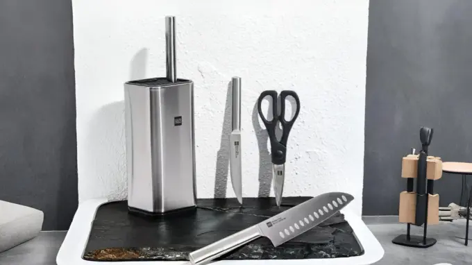 HuoHou Stainless Steel Kitchen Knife Set — отличный пример того, как должен выглядеть универсальный кухонный набор без показной шефовской мишуры. Все элементы выполнены в едином минималистичном стиле: цельнометаллические корпуса, матовая обработка и классические формы без декоративных вставок. Набор выглядит аккуратно и дорого, не перегружает кухню визуально и легко вписывается в любой интерьер — от скандинавского в стиле IKEA до лофта. При этом сет довольно компактный и не требует много места на столешнице.