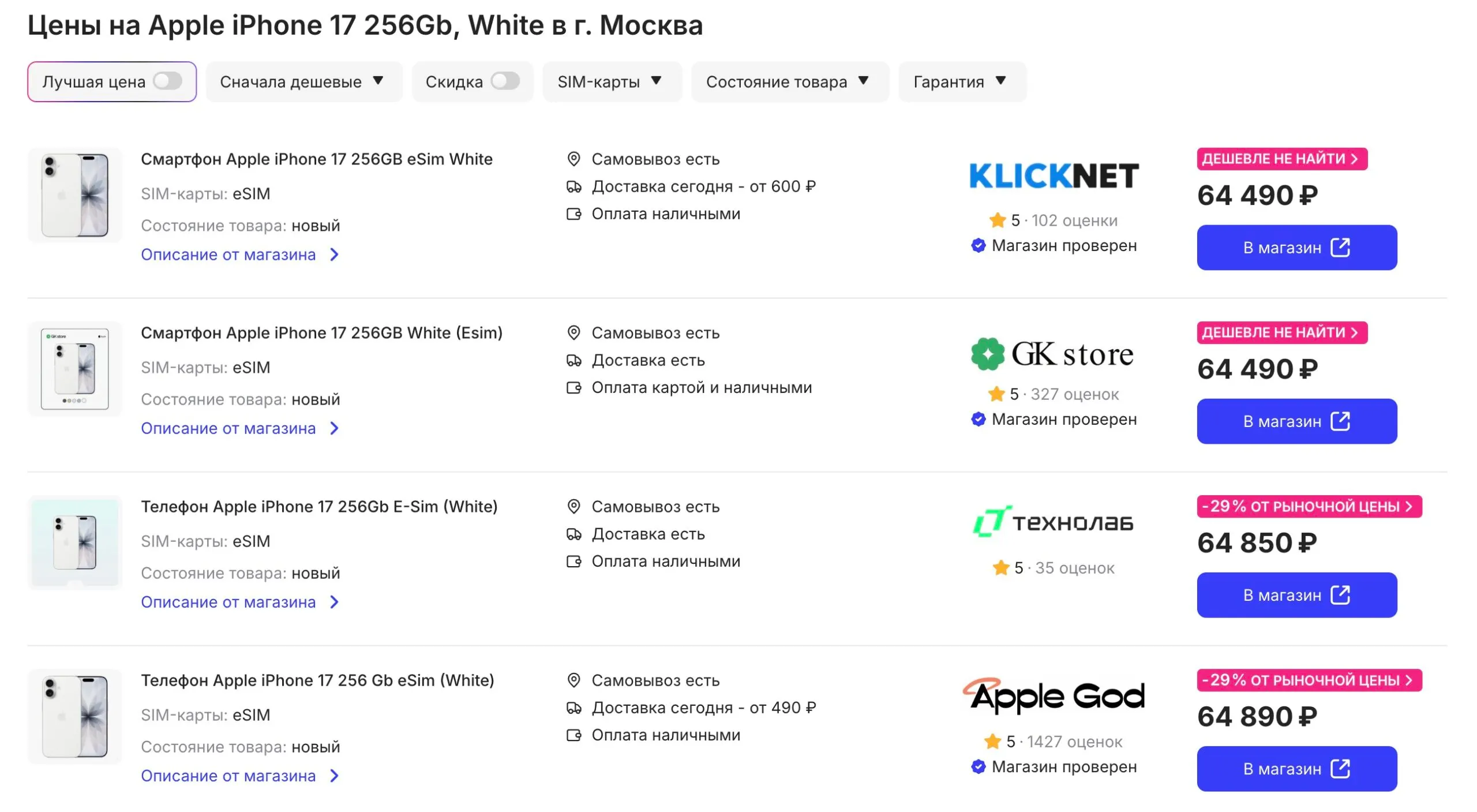 Но есть нюансы. Как правило, самые доступные прайсы предлагают продавцы, которые, во-первых, торгуют в Москве (там выше конкуренция), во-вторых, отдают айфоны за наличные деньги (так выгоднее, так как не нужно платить комиссию банку).