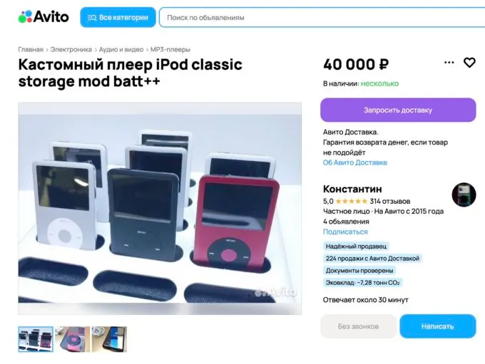 Жаль, что iPod больше не выпускают — и вряд ли будут выпускать когда-нибудь. На сайтах с объявлениями можно найти много старых айподов, но большинство из них имеют проблемы с батареей или в целом находятся в плохом состоянии. Хотя встречаются кастомы — устройства с корпусом и прошивкой плеера Apple, но с новыми SSD и аккумулятором. Такие аппараты могут стоить как новые смартфоны.