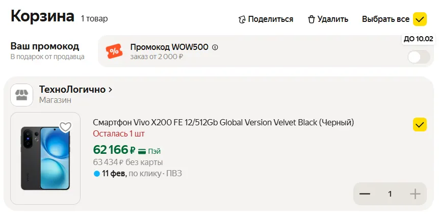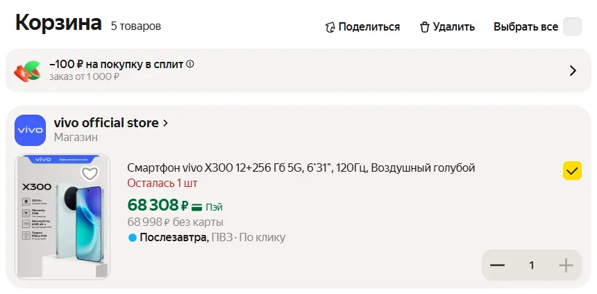 Оправдан ли прайс в 63 кэса? Скорее нет, ведь в ассортименте бренда есть еще одна компактная модель, которая чуть дороже, но заметно круче по спецификациям. Речь про свежий Vivo X300 — его можно с легкостью урвать до 70К. По многим параметрам X300 и X200 FE идентичны, однако новинка мощнее из-за чипа MTK Dimensity 9500, поддерживает беспроводную зарядку на 40 Вт и заметно лучше снимает: тут и основа с оптостабом, и продвинутый 50-мегапиксельный ультраширик с автофокусом. Разве что батарея чуть меньше (6040 mAh), но с этим можно смириться.