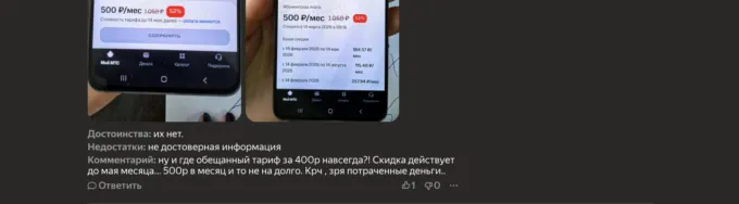 В чём подвох? Мы изучили карточки товаров и разобрались. Во-первых, во многих случаях SIM-ки реализуют не сами операторы, а сторонние продавцы. Во-вторых, у многих лотов далеко не идеальные рейтинги. Часть покупателей в отзывах жалуется, что SIM-ки не активируются, а другие пользователи пишут про некорректно заявленные условия. Например, в карточке одного из лотов было указано, что цена останется фиксированной навсегда, но на деле скидка будет действовать только до конца весны.
