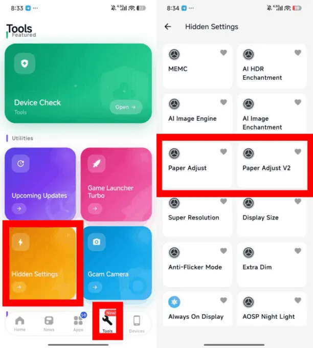 Чтобы включить режим, нужно открыть приложение MemeOS Enhancer из Google Play. Затем переходим в раздел Hidden Settings из настроек, находим пункт Paper Adjust V2 и включаем Paper Mode.
