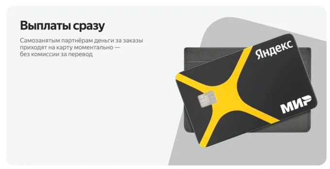 В сроках начисления и заключается главное преимущество карты: фирма обещает моментальные выплаты партнерам. Так, водители Яндекс Такси и курьеры Яндекс Еды обычно получают свои деньги на следующий день — это минимальная задержка. А с Яндекс Про денежки за работу капают сразу. Но есть нюанс — нужно быть оформленным в качестве самозанятого.