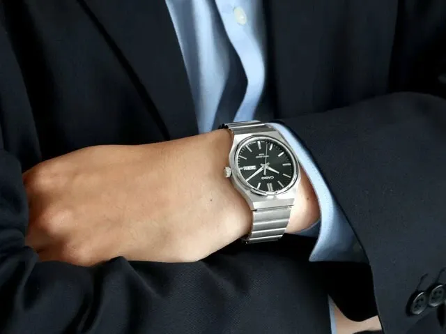 Casio Collection MTP-E735D-1A — классические мужские часы с аккуратным и строгим дизайном, который легко вписывается практически в любой стиль одежды. Модель выглядит минималистично и при этом достаточно солидно: металлический корпус, браслет из нержавеющей стали и аккуратный циферблат без лишних деталей. Есть даже вайбы Audemars Piguet или Tissot PRX. Такой аксессуар одинаково уместно смотрится как с повседневной одеждой, так и с более строгим образом. При этом часы остаются лёгкими и удобными для ежедневного ношения.