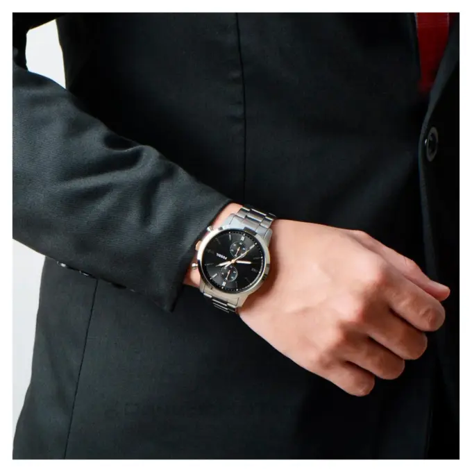 Fossil Townsman FS5407 — полноценный хронограф, позволяющий замерять отрезки времени с высокой точностью. Циферблат прикрыт минеральным стеклом, устойчивым к возникновению мелких царапин. Ну, а влагозащита в 50WR позволяет не снимать часы во время душа или при плавании в бассейне. Эта модель лучше всего смотрится в рамках стиля смарт-кэжуал — с джинсами, рубашками и кожаными куртками.