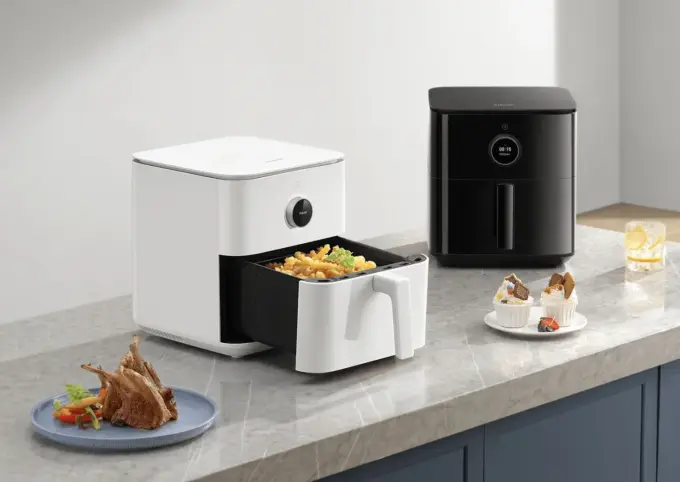 Главная особенность девайса — вместительная корзина объёмом 6,5 литра и система циркуляции воздуха на 360 градусов. Температуру можно регулировать примерно от 40 до 220 °C, поэтому гаджет подходит не только для картошки фри, но и для мяса, рыбы, овощей и даже выпечки. Управлять возможно как с панели, так и через приложение Xiaomi Home. Последнее — мой фаворит, так как там можно глянуть рецепты, задать таймер или включить разогрев дистанционно.