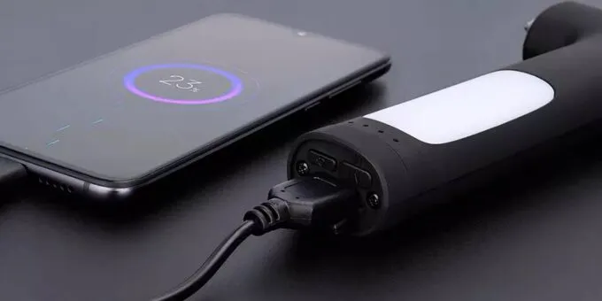 Наконечник молотка выполнен из прочной вольфрамовой стали, которая легко разбивает автомобильное стекло в экстренной ситуации. Также в корпусе есть встроенный аккумулятор, благодаря которому инструмент может работать как небольшой пауэрбанк. А с помощью магнитов его можно зацепить на капот или крыло под нужным углом, чтобы подсветить себе, пока подкачиваешь шину.