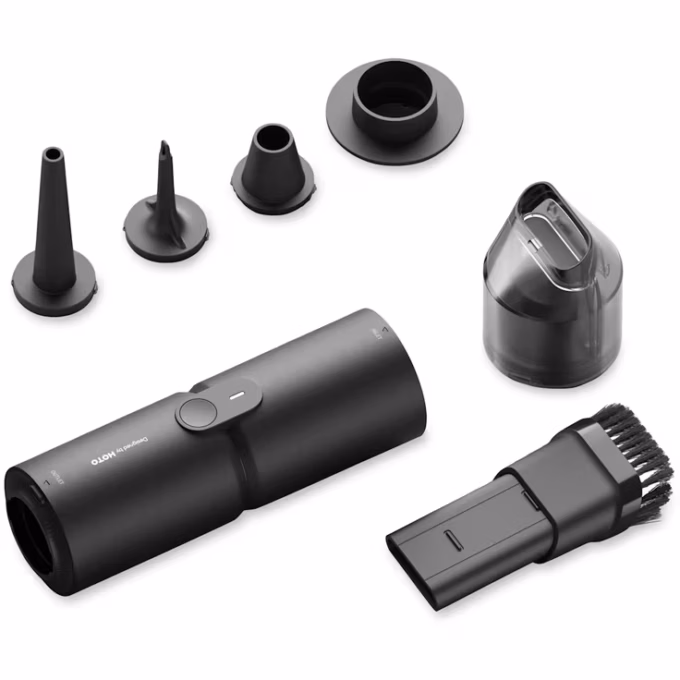 Ещё один полезный гаджет, чтобы поддерживать чистоту в салоне. HOTO Compressed Air Capsule — компактный девайс, который сочетает в себе функции мини‑пылесоса, воздуходувки и насоса. Оно легко помещается в бардачке или сумке. Внутри установлен мощный мотор, а в комплекте идут несколько насадок для разных задач. С помощью такой капсулы можно быстро убрать крошки и песок из салона, продуть труднодоступные места или даже накачать матрас.