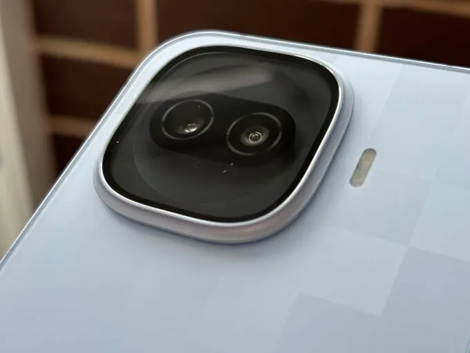 3. Переворачиваем смартфон и видим крайне интересный дизайн. Во-первых, блок с камерами откровенно забавный: это горизонтальная «пилюля», врезанная в круг, который находится в округлом квадрате. При этом вспышка расположена отдельно — видимо, места не хватило. Во-вторых, в серебристой расцветке задник поделен на кучу квадратиков: у них разные оттенки и текстуры, благодаря чему девайс хочется постоянно вертеть в руках, наблюдая, как панель меняется под разными углами.