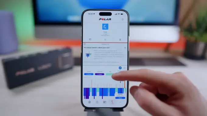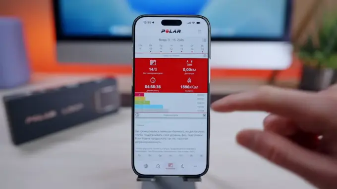 Сон девайс от Polar записывал с той же точностью, что и часы Garmin Fenix 8, что неплохо. Жаль, что нет функции умного будильника (нет вибромотора), также утром браслет не будет присылать отчет о качестве отдыха. При этом тут есть индикатор восстановления организма Nightly Recharge. Также есть опция Заряд энергии от сна — она прогнозирует, как долго пользователь будет ощущать бодрость после отдыха.