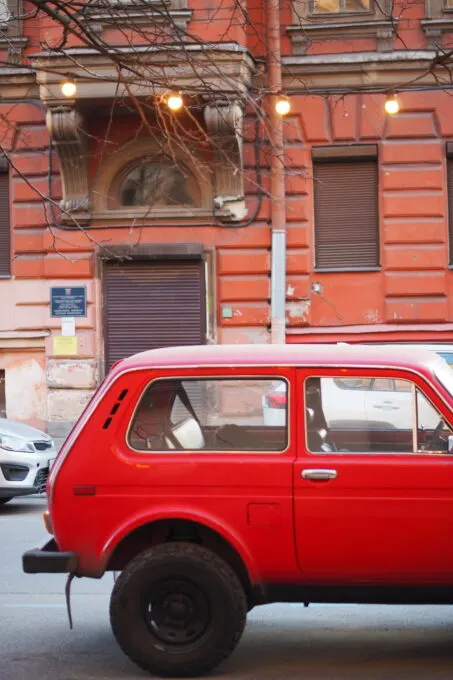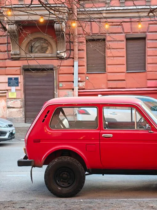 Идём дальше. Следующий пример — фото с красной машиной. Фотография на realme в целом получилась более яркой и красочной, что заметно даже по цвету машины. На первой фотографии оттенок более насыщенный, а на втором фото авто выглядит каким-то блеклым, словно это какой-то ретро-снимок.