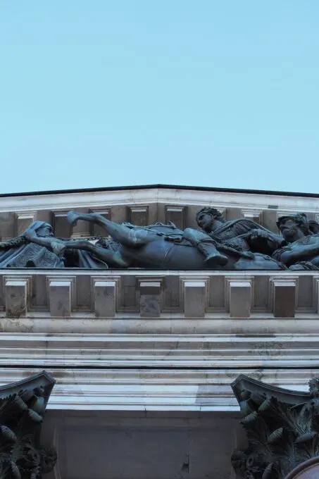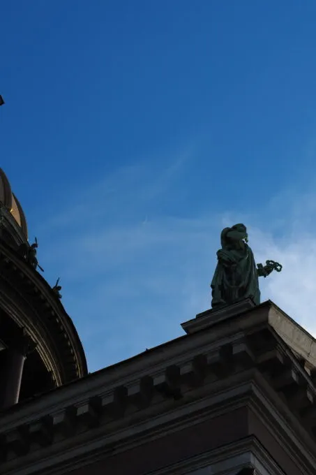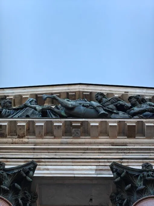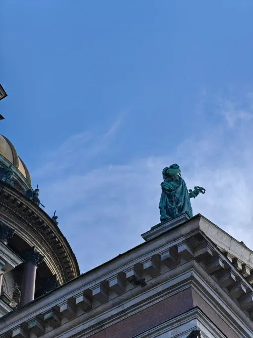 Ловите ещё один пример. Тут сделанный на Olympus снимок портят тени. Половина кадра чуть ли не полностью тёмная, даже на статуе сфокусироваться сложно. Сделанный на realme снимок смотрится явно выигрышнее.