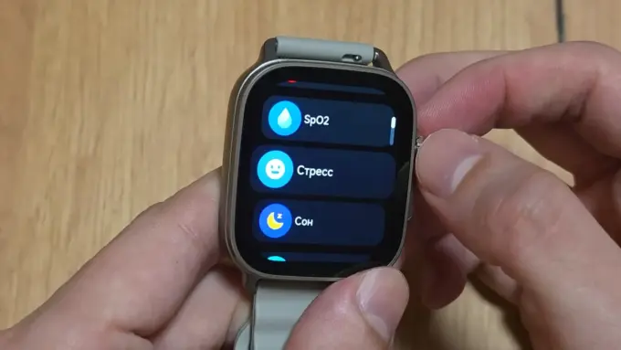 Как ни странно, порадовал дисплей. Экран размером около 2 дюймов — яркий, сочный, умеет пробуждаться при подъеме запястья и по тапу. Придраться можно разве что к отсутствию автояркости.