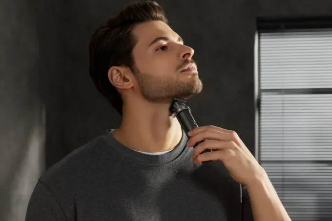 Лезвия триммера очень крепкие — они покрыты алмазоподобным углеродным материалом (DLC). У модели есть два положения бреющей головки, индикация заряда и режимов работы и автономность 180 минут.