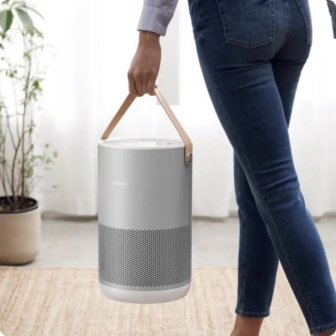 Модель, которая эффективна на площади до 30 квадратов, но ее можно взять за ручку и перенести в другую комнату — аппарат весит всего 3 кг. Модель получила тройную систему фильтрации — предфильтр, HEPA H13 и угольный фильтр. У девайса есть четыре режима работы, включая автоматический — с последним очиститель автоматически анализирует уровень загрязнения воздуха. Устройством можно управлять со смартфона. Сменные фильтры стоят около 3000 рублей.