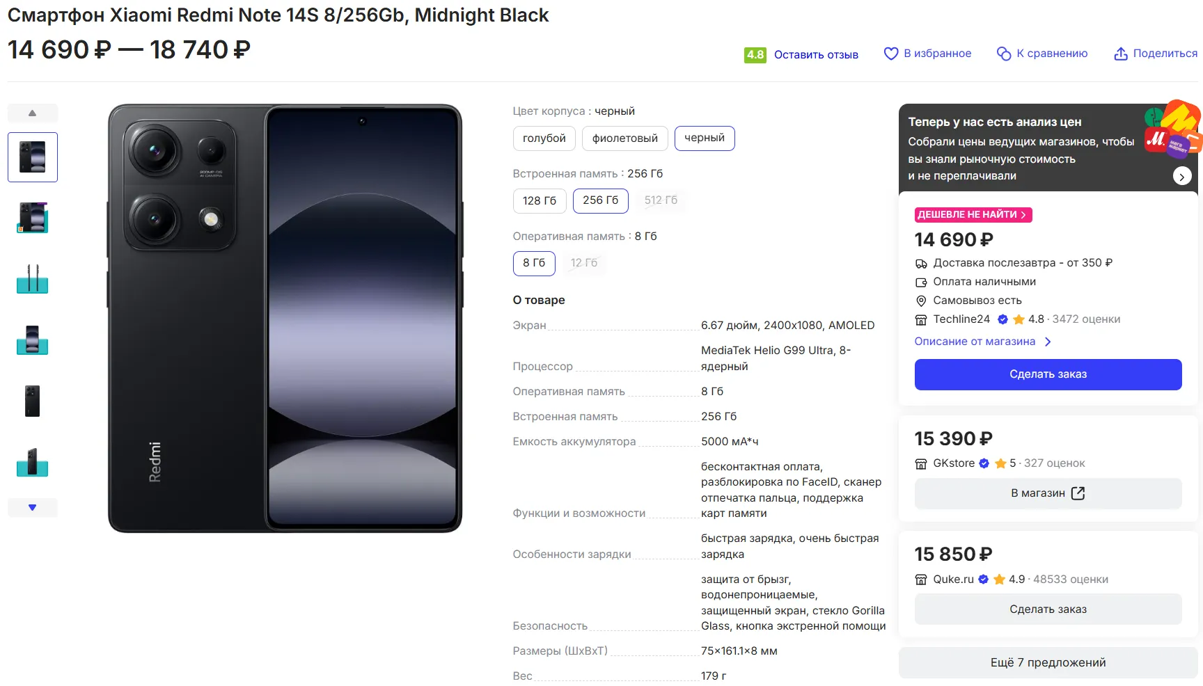 За младшую конфигурацию устройства на 8/128 Гбайт памяти просят всего 13 950 рублей на price.ru, однако мы советуем слегка переплатить за версию с 256 Гбайт на накопителе — она стоит 14 690 рублей. Разница совсем небольшая, надо брать именно старшую модификацию.