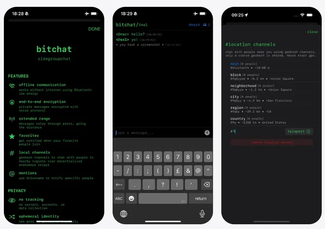 Еще одно преимущество BitChat — полная анонимность. Для работы сервис выдают юзерам временные ID. Сообщения шифруются протоколом Noise Protocol Framework.