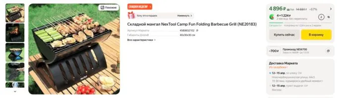 Сейчас складной мангал NexTool Camp Fun Folding Barbecue Grill можно урвать на Яндекс Маркете за 4896 рублей. А с кэшбеками некоторых банков он обойдётся ещё дешевле.