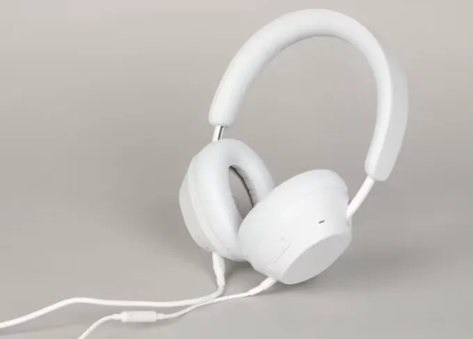 У гарнитуры солидная картонная коробка с пластиковым ложементом, в котором лежат сами наушники, кабель AUX и двусторонний USB-C. Кейса нет. По дизайну девайс напоминает великие Sony WH-1000XM5. Пластиковый корпус имеет покрытие софт-тач, чашки поворачиваются на 90 градусов, конструкция не складная, снизу есть порты и механические кнопки управления гарнитурой. Амбушюры изготовлены из искусственной кожи с мягким пенным наполнителем.