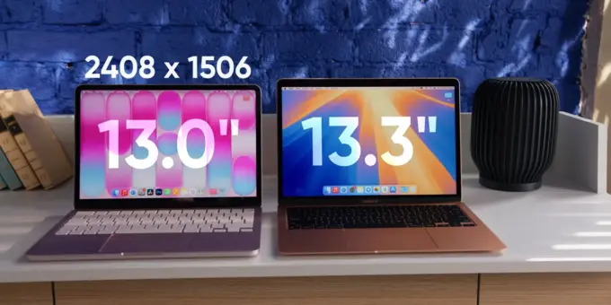 Экран на 13 дюймов чуть меньше, чем у Air на M1. Зато матрица ярче — сильно ярче. Но убрали True Tone, цветовой охват — не p3, а sRGB. За свои деньги — топовый дисплей.