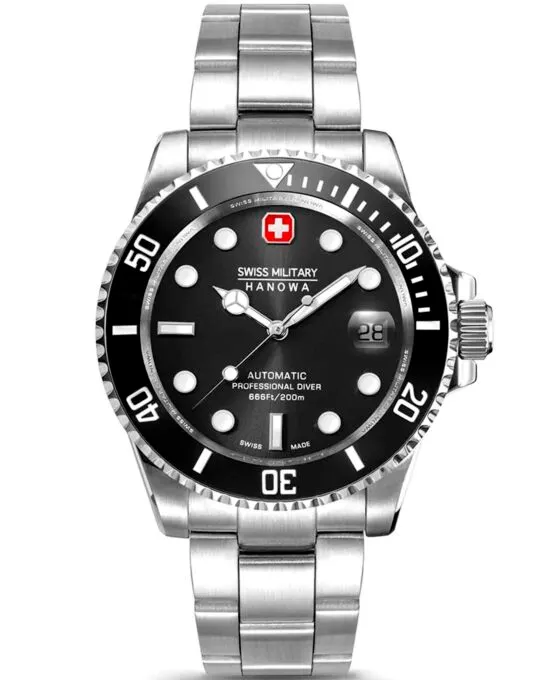 Swiss Military Hanowa Sealord SMWGL0006301 — швейцарская надежность в формате классического дайвера. Массивный стальной корпус с вращающимся безелем и лаконичным черным циферблатом выглядит строго и функционально. Крупные метки и стрелки с мощным светонакопителем обеспечивают отличную читаемость, а прозрачная задняя крышка позволяет оценить работу швейцарского автоматического механизма на 25 камнях. Это тяжелые, мужские часы для тех, кто ценит вес металла на запястье.