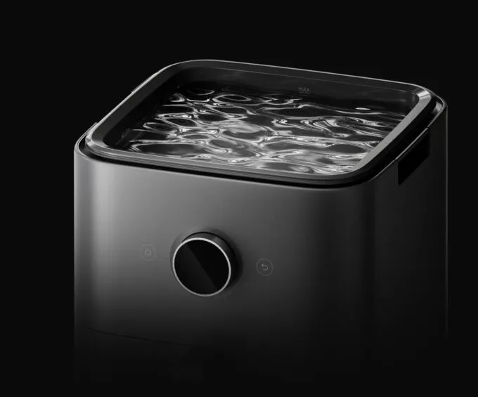 Новый аэрогриль имеет прямоугольную форму и чашу на 7 литров. Воду, которая нужна для конвекции, выпечки и разогрева, можно заливать прямо сверху — как в увлажнитель. Кроме базовых функций аэрогриля, это устройство способно готовить на пару и имеет режим низкотемпературной готовки су-вид. Такой функции вроде бы ни у кого еще не было.