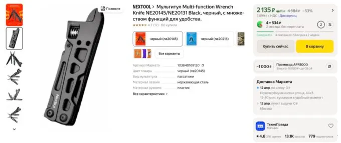 Прямо сейчас шикарный мультитул Xiaomi NexTool Multi-function Wrench Knife NE20145 можно урвать на Яндекс Маркете за 2135 рублей. А с кэшбеком некоторых банков покупка обойдется еще выгоднее.