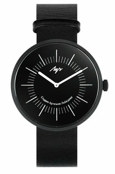 Коллаборация с самой известной дизайнерской студией СНГ породила один из самых узнаваемых силуэтов в современной истории «Луча». Главная фишка «Радиуса» — циферблат, который обыгрывает название марки: временные метки здесь словно вывернуты наизнанку и расходятся из центра, имитируя солнечные лучи. Латунный корпус с черным матовым покрытием и минеральное стекло с антибликом идеально дополняют друг друга. На задней крышке красуется гравировка, подтверждающая эксклюзивность проекта.