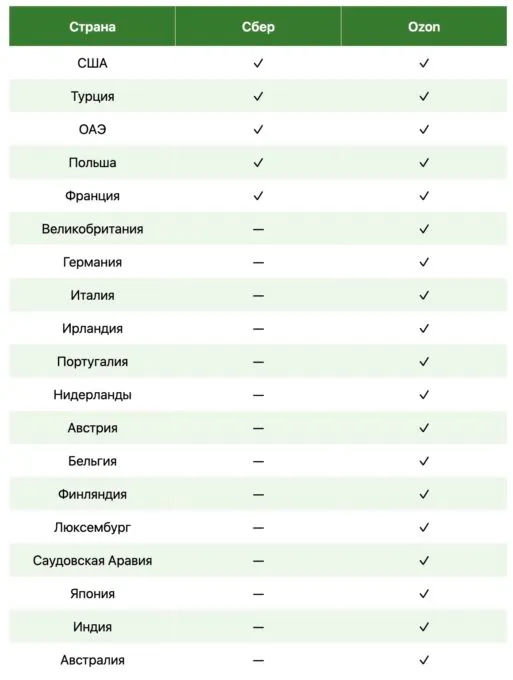 Зато Ozon продает подарочные карты для 19 регионов, а Сбер — всего для пяти стран.