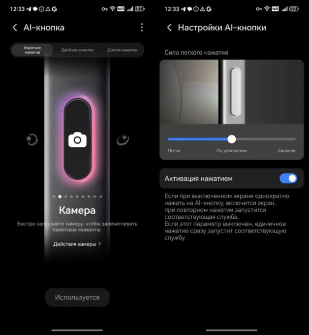 4. Есть функциональная умная кнопка. Она находится на правом торце девайса, чуть ниже кнопки включения/блокировки. На эту кнопку можно задать выполнение конкретного действия — например, быстрое открытие камеры. Кроме того, можно настроить и дополнительные действия по двойному и долгому нажатию. На практике это реально экономит время и упрощает жизнь.